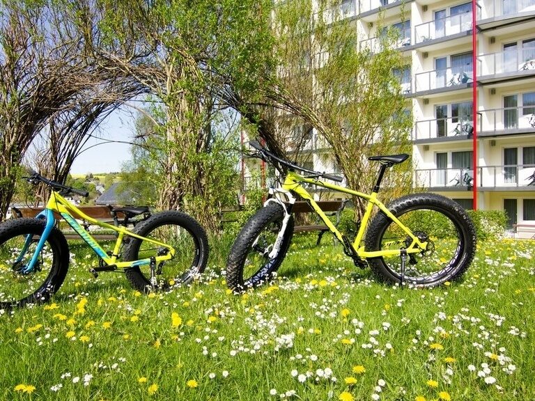 - "Fatboy" heist das Fatbike von Spezialized (22 € am Tag) - mit 10 cm breiten Reifen geht es über die wildesten Wege