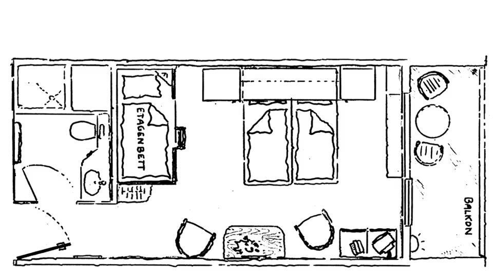 Typ II 2-Raum Zimmer: Die Kinder schlafen in ihrem eigenen Doppelbett – inklusive Halbpension und Balkonblick.