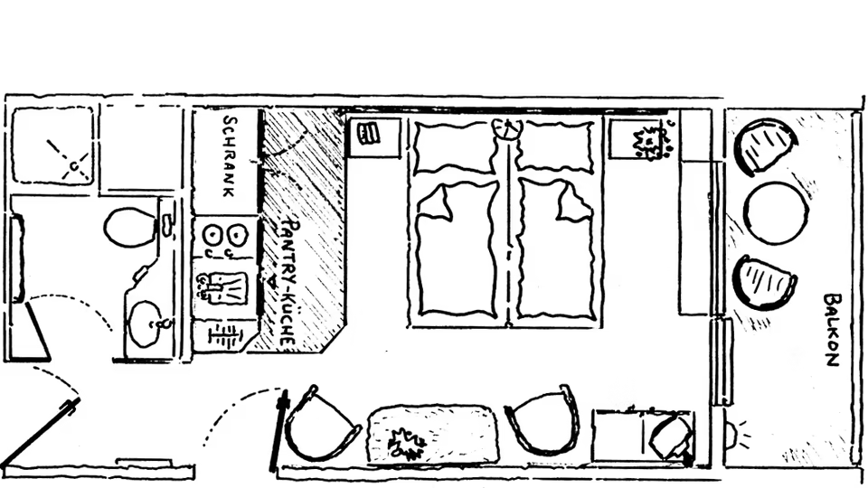 Doppelzimmer mit Balkon und Miniküche